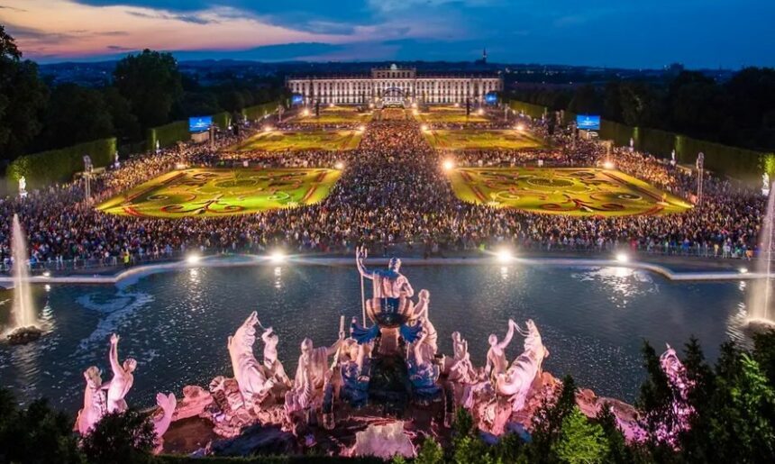 这场音乐会在美泉宫举行,是每年夏季吸引十万名观众的盛事,并在80多个国家进行转播。每年都会邀请一位著名独唱家,今年是男中音歌唱家Bryn Terfel。