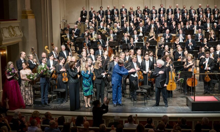 On the evening of the 9th, Rattle conducted Mahler’s Symphony No.2 “Resurrection” at the State Opera. After the performance, surrounded by the orchestra, choir, and soloists, the award ceremony was held, with Berlin’s Cultural Affairs Councillor Sarah Wedl-Wilson, Artistic Director Elisabeth Sobotka, and General Music Director Christian Thielemann on stage.